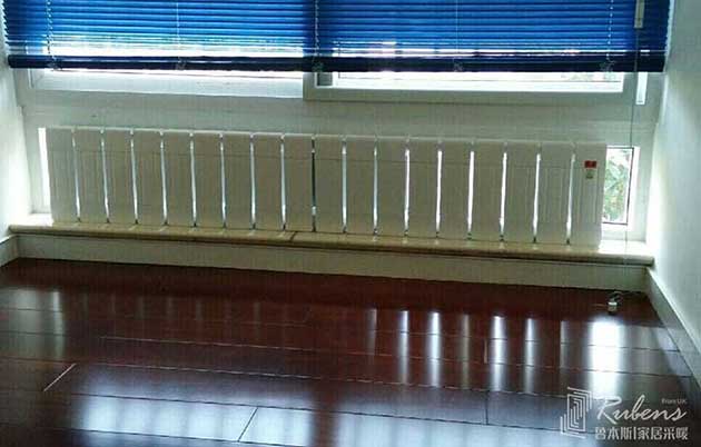 窗台下横装紫罗兰色暖气片安装效果图
