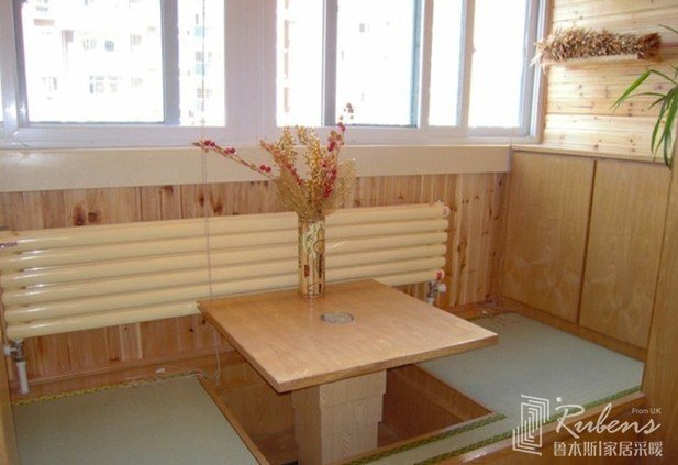 横着安装在窗台下面,暖气片与周围色调完全融合。