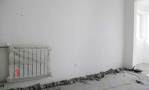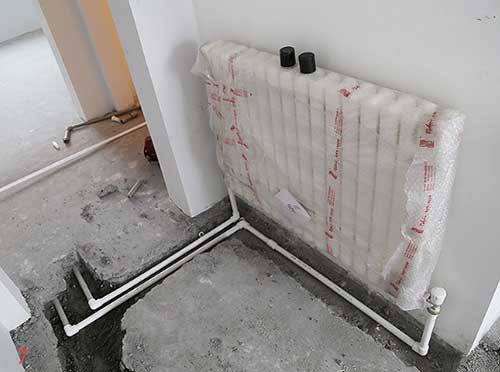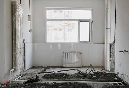 接下来装修流程开始,首先要改造水暖,开发商标配的