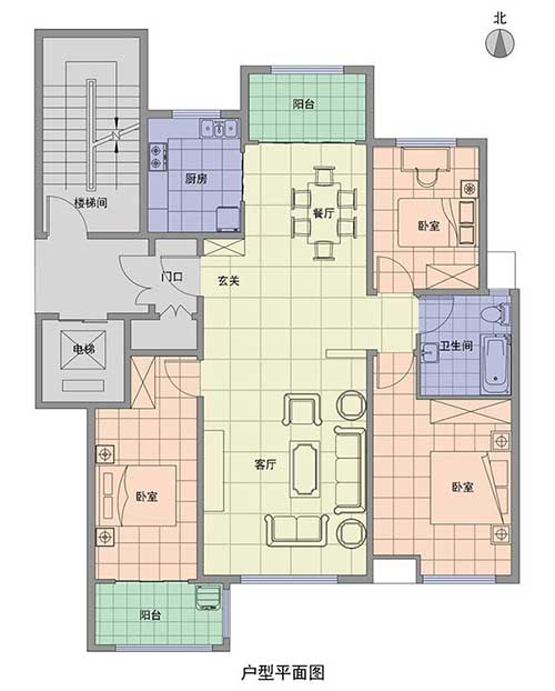 先来一张王先生家的户型图,三室两厅一厨一卫,双卧室、客厅向阳,南北通透,可算是一个很好的户型。
