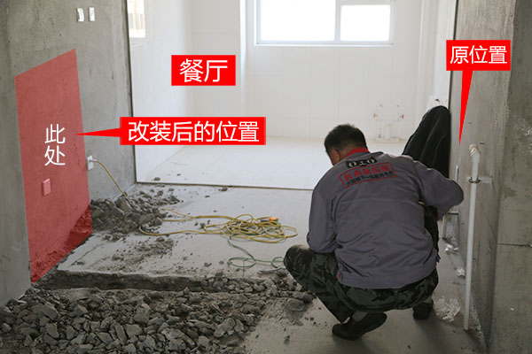 钢制暖气片,客厅与餐厅暖气片太占位置,装修起来着实不便。而且每个房间暖气片散热量完全撑不起每个房间的面积,需要加片或者是换更大散热量的暖气片,暖气片更改之后的位置小编在图中已经标记了出来,接下来猥琐的师傅开始工作咯!!