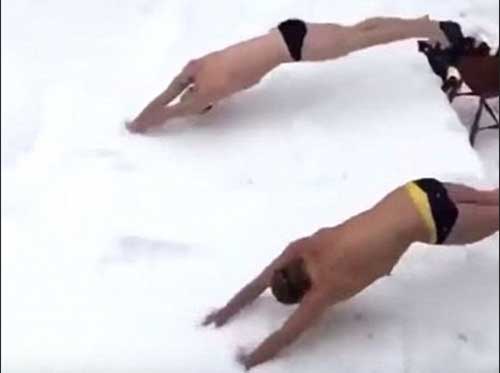 暴雪“乔纳斯”席卷美国东海岸后,路面积雪及腰深。不少人穿上泳衣,戴上护目镜,一头扎进雪堆中,加入“潜雪”热潮。不少网友将“潜雪”视频上传至推特等社交网站,引来一片热议。但外国网友普遍不赞赏此种行为,不少人表示“坐等脖子扭伤者”或者“愚蠢”。也有网友打趣道:“敢不敢待上30分钟别回屋。”