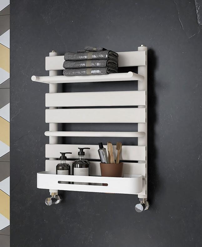 鉴于厨房有两大特点,一是油烟大;二是杂物多。这就决定了厨房用暖气片要好打理,便于清洁,很好兼具收纳功能,因而可以选择卫浴专用暖气片,它体型小巧,几乎不占用空间,表面光滑细腻,不易结垢,容易打扫清洁,又兼具五金挂件的功能,可以放置一些厨房用品。